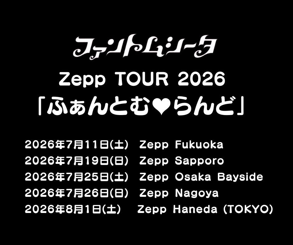 ファントムシータ Zepp Tour 2026「ふぁんとむ♥らんど」のファントムシータオフィシャルFC会員二次先行、並びにオフィシャルHP・SNS二次先行受付が1/13(火)AM10:00よりスタートいたします。